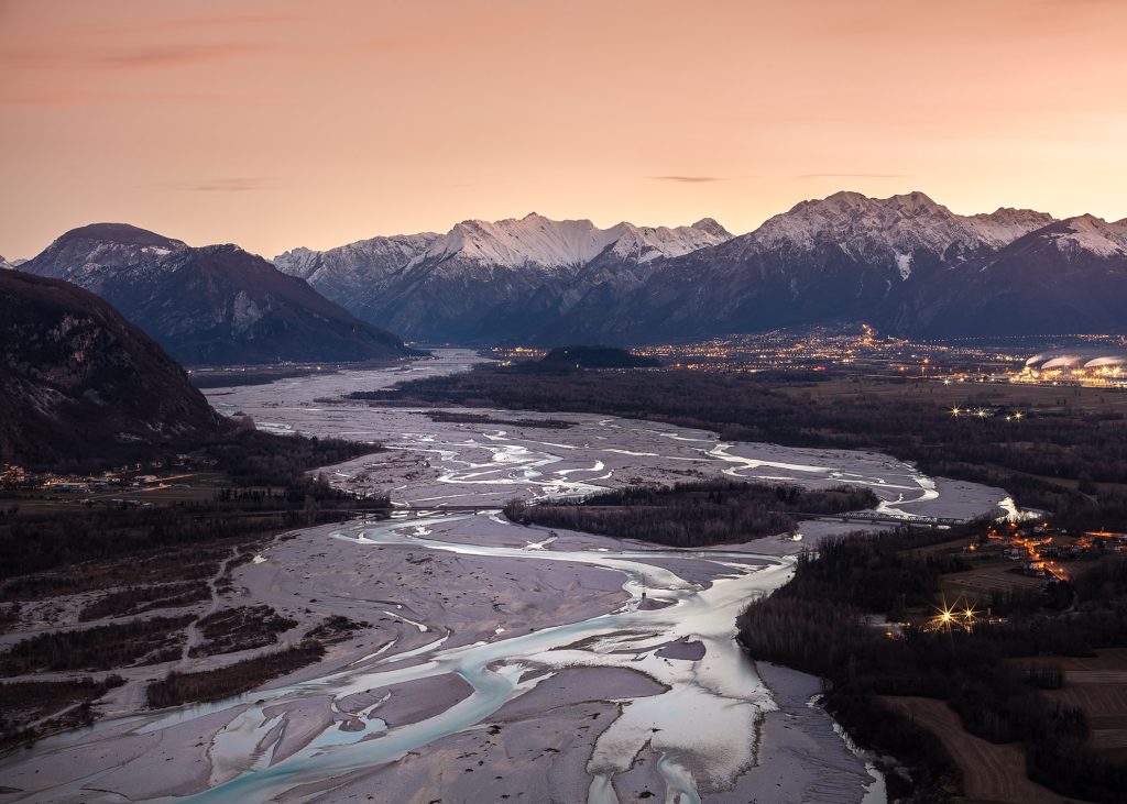 The Pinzano stretch offers one of the most breathtaking views of the river, and is the location of the planned flood defense infrastructure. From Mount Ragogna/Muris, the Tagliamento is first seen as it emerges from the prealps before widening out into the large braided channels. Here, flood retention infrastructure is planned, with potential impacts on the river.